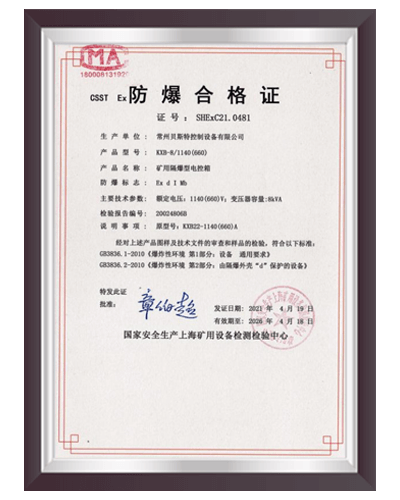 于2000年通過 ISO9001:2000質量體系認證,建立了完善的產品質量控制體系;2006 年6月取得全國工業產品生產許可證;2008年9月取得礦用產品安全標志證書;2012年取得8項礦用產品的專利證書。